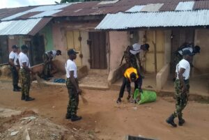 He praised the soldiers for cleaning heaps of refuse at a motor park, as well as markets, gutters, roads, and other surrounding areas along the Umuoriehi and Express Tower axis of Umuahia.
