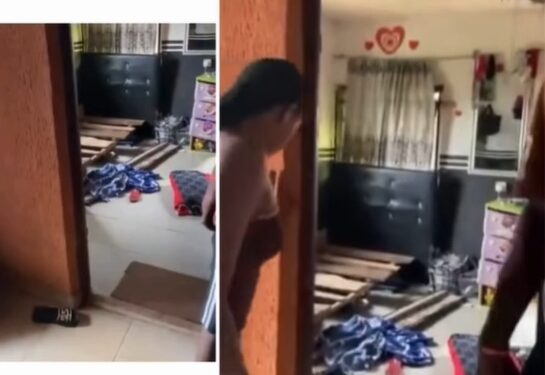 In the trending video, female voices could be heard berating the man for taking such a decision just because his woman decided to move on without him. The video showed a dismantled bed frame and other properties packed together to be taken away by the aggrieved boyfriend.