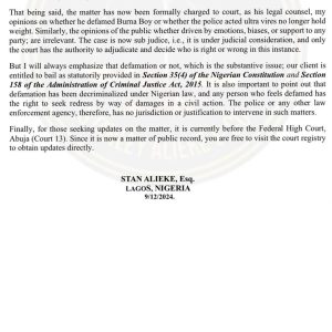 Akpi was not arraigned last week because the judges were at a conference and by next week, the courts will shut down for the festive season until late January. His matter has now been fully charged to court- Speed Darlington’s other lawyer, Stan Alieke, gives update