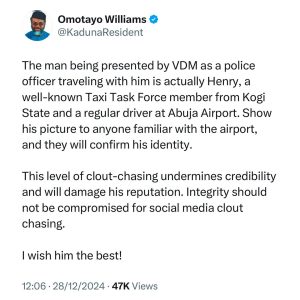 Alleged missing N180 million: It’s a prank. VeryDarkMan is renovating a school in Jos- singer Dammy Krane says Swipe to see what Human Rights activist, Omotayo Williams wrote about the man VDM showed off as his Investigation officer