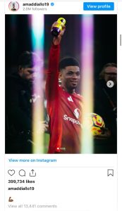 “Amad Diallo has a Premier League hat trick before Saka😭.”