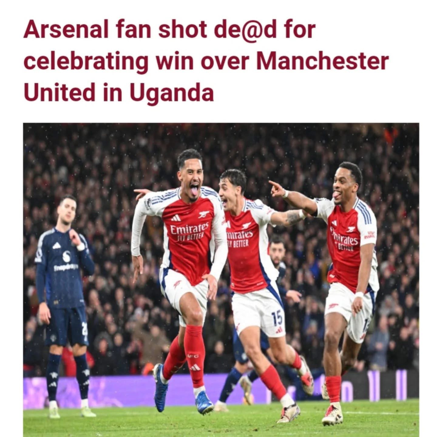 An arsenal fan in Uganda was k!lled while celebrating the Gunners’ 2-0 win over Manchester United in a Premier League game on Wednesday, December 4.