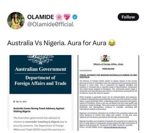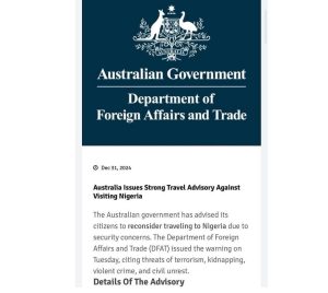 In a rare diplomatic exchange, both the Australian and Nigerian governments have issued travel advisories warning their citizens about traveling to each other’s countries due to prevailing security risks and societal issues.