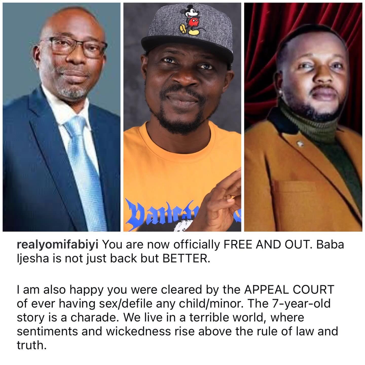Actor, Yomi Fabiyi had on Friday, November 14 claimed that Baba Ijesha was released from prison after a Court of Appeal dismissed his sexiu@l abuse case. He claimed the appellate court had exonerated Baba Ijesha and that the entire case was a charade.