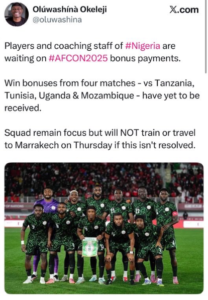 The Super Eagles players and coaches have declined to travel to Marrakech over unpaid bonuses.