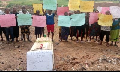 A symbolic coffin was also displayed with the inscription: “Chinedu Chukwuonye Cudoc is sabotaging APC.”