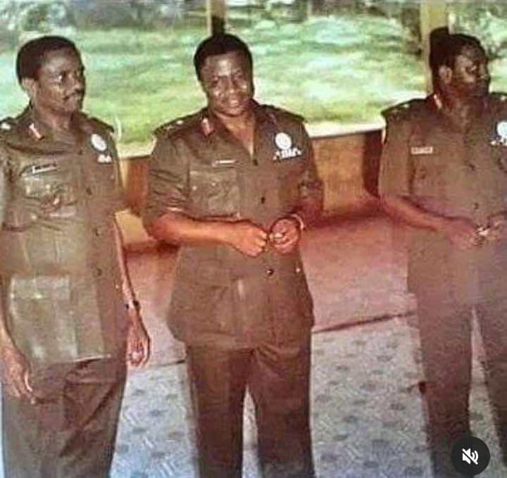 Photo caption: A photograph shows the Military Head of State, General Ibrahim Babangida, at the centre, flanked by General Sani Abacha on the right and General Abba Abdulkadir on the left.