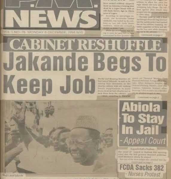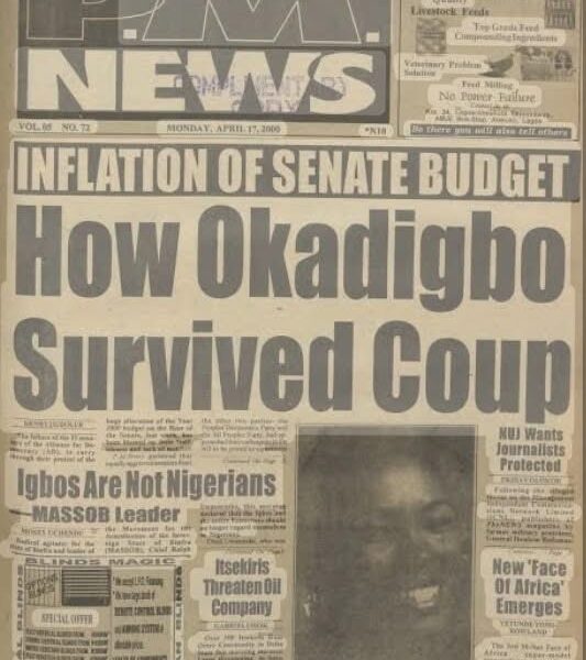 Political tension, corruption charges, and extraordinary headlines reflected Nigeria’s turbulent military era under General Sani Abacha The front page of P.M. News published on Monday,...