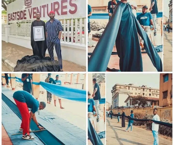 A fashion designer claimed a world record by creating a show-stopping robe with 50-metre sleeves. The longest sleeves on a garment is 51.20 metres (167.97...
