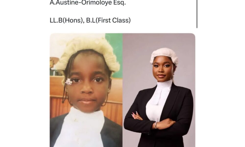 A newly called-to-bar law graduate, Austine Orimoloye, is trending online after sharing her inspiring journey from law school dream to national recognition. In a post...