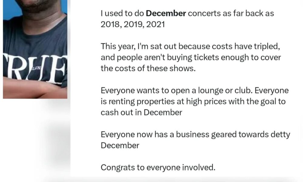 Media personality Osi Suave has shared his frustration over what he believes is the gradual collapse of detty december. According to him, what used to...