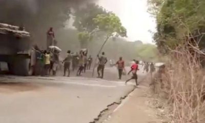 A viral video on Monday showed the moment a truck was engulfed in fire, with people stealing its content: bags of cement. Eyewitnesses reported that...