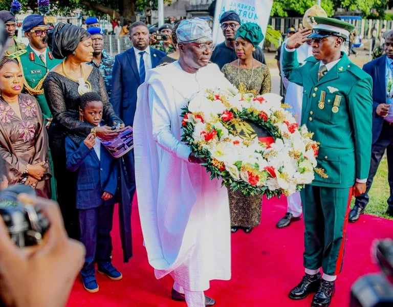 Governor Babajide Sanwo-Olu of Lagos State on Friday participated in a wreath-laying ceremony marking the 50th anniversary of the death of the late General Murtala Ramat...
