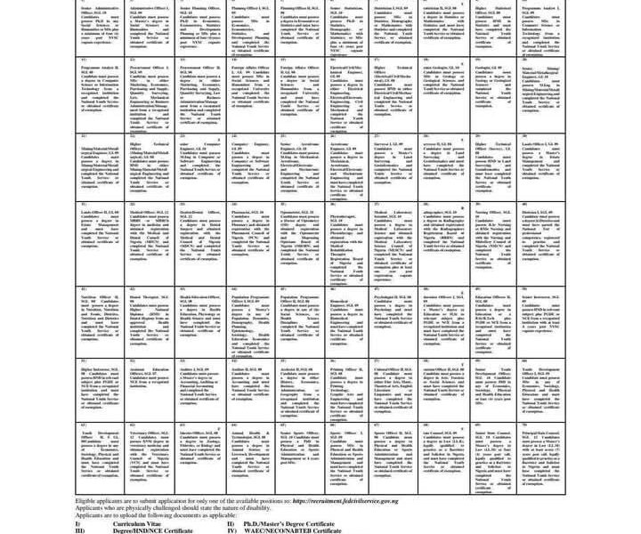 The vacancy announcement is published on the Commission’s website: fedcivilservice.gov.ng and in the Sun, Daily Trust and The Nation newspaper of Monday 27th January 2025. Eligible...