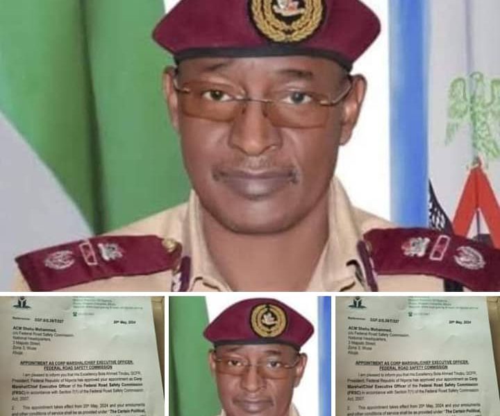 President Bola Ahmed Tinubu’s appointment of ACM Shehu Mohammed as Corp Marshal and Chief Executive Officer of Federal Road Safety Commission Appointment of ACM Shehu Mohammed*:...