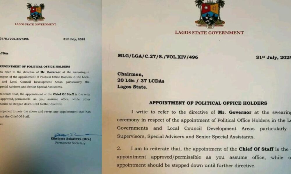 In an official circular dated July 31, 2025, with reference number MLG/LGA/C.27/S./VOL.XIV/496, the Permanent Secretary, Ministry of Local Government, Chieftaincy Affairs and Rural Development, Mrs. Kikelomo...