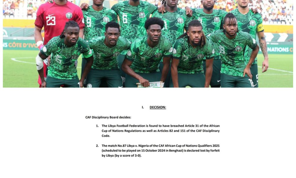 The Disciplinary Committee of Confederation of African Football has awarded the Super Eagles of Nigeria three points and three goals in their aborted matchday 4 2025...