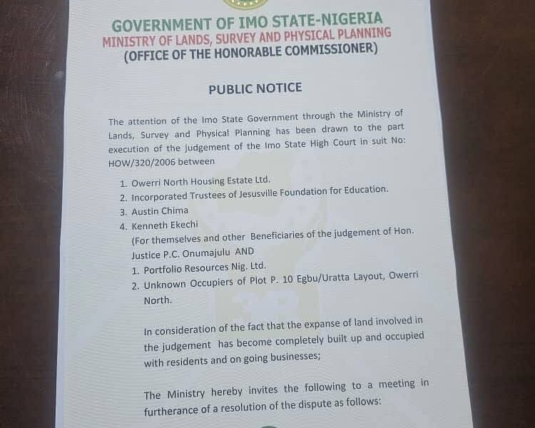 The Imo State Government, through the Ministry of Lands, Survey, and Physical Planning, has taken steps to address a long-standing land dispute by inviting the...