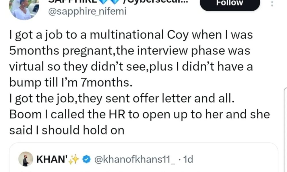A Nigerian lady on X has gone viral after recounting how she lost a dream job offer the moment she informed the company that she...