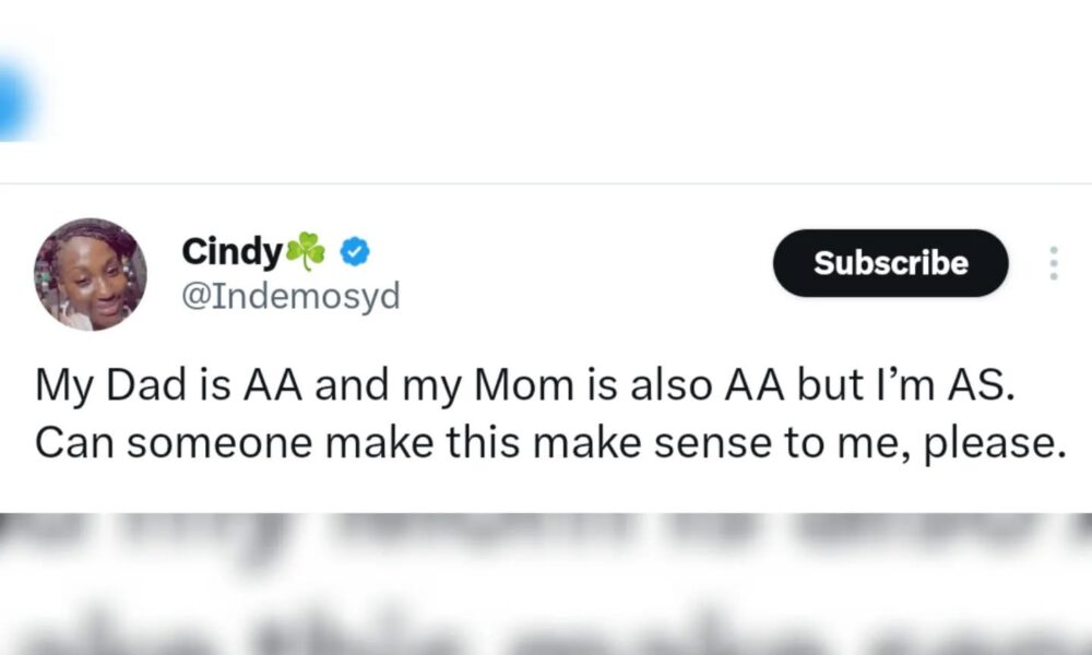 An X user has sparked conversation online after sharing confusion about their genotype. In the post, the user wrote: “My Dad is AA and my...