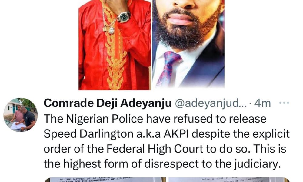 The Nigerian Police have refused to release Speed Darlington a.k.a AKPI despite the explicit order of the Federal High Court to do so- Deji Adeyanju