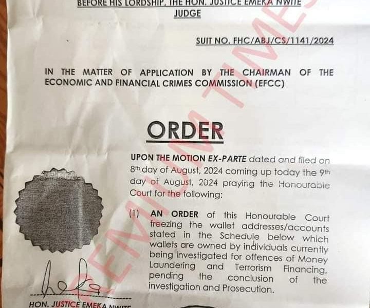 The freezing followed an order by the Federal High Court in Abuja. The judge, Emeka Nwite, gave the order in a ruling delivered August, a...