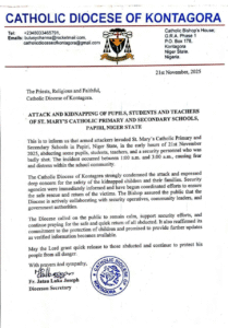 The Catholic Diocese of Kontagora has confirmed that armed assailants attacked St. Mary’s Catholic Primary and Secondary Schools in Papiri, Niger State, in the early hours of November 21, 2025, abducting students, teachers, and a security guard.