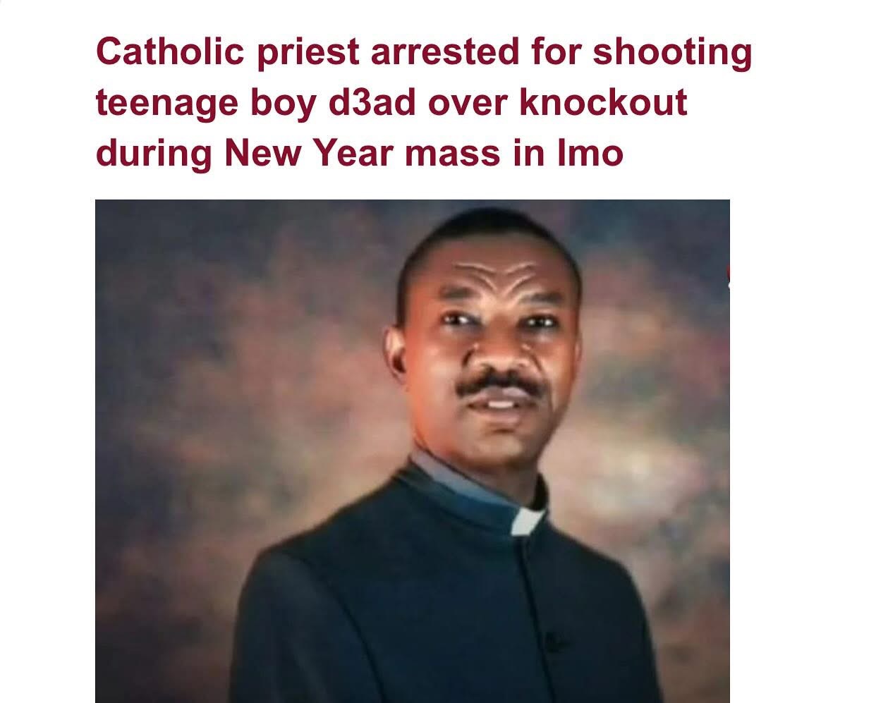 A Catholic priest, Rev. Fr. Joseph Enyinnaya, has been arrested in Imo State for allegedly shooting a teenage boy d3ad after he threw knockouts inside the church.