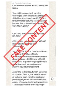 A statement from the CBN’s communications department further clarified, “The only official sources for releasing statements to the media are our website or statements from our department. There is also no Deputy Governor by such name. We are investigating the source of this fake content.”