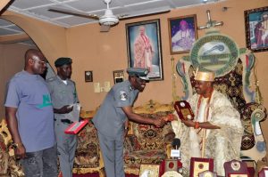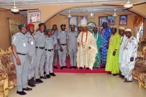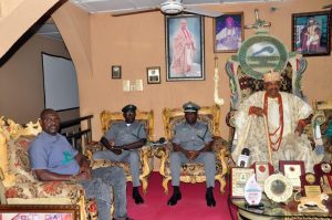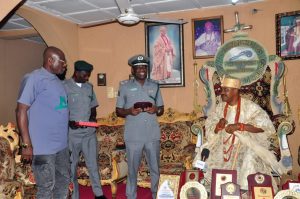 Comptroller Paul Bamisaiye, in charge of the Nigeria Customs Service, Western Marine Command, on Thursday, 24 October 2024, visited His Royal Majesty, Oba Michael Adetoye, the Jegun of Idepe-Okitipupa, as well as Oba Afolabi Oladimeji, the Olu of Igbokoda.