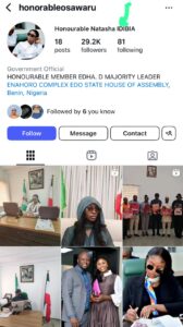 Ekwutosblog recalls that Natasha Osawaru, the Deputy Majority Leader of the Edo State House of Assembly, updated her Instagram name to “Natasha Idibia”.