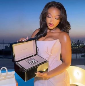 Prior to attending her birthday celebration, she showcased the high-end gifts she received for the occasion. According to Diana, she was given her first Birkin designer handbag, valued at N47m, as a birthday gift. Additionally, she received a diamond Bvlgari timepiece and several other lavish items.