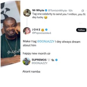 Don Jazzy gifts woman millions of Naira for having an ‘’unhealthy account balance’’