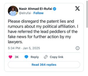 In a post on his X account, El-Rufai described the claims as “patent lies” and labelled them as baseless rumours.