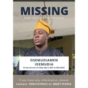“Osemudiamen has been missing since Friday, May 9. He resumed at his office in Ikota that morning and later planned to go to the head office with a colleague after work for an appointment they had with a senior staff member. However, while they were on their way, the official called to say he wouldn’t be able to see them until Monday,” he said.