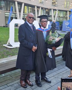 “Happy to witness, alongside my wife, the graduation ceremony of our son, Jordan, who just earned a Master of Laws (LLM) Degree at the Queen Mary University of London, UK.