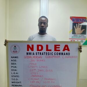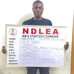 Babafemi further stated that in the same vein, two kingpins of another syndicate, Obunike Joseph Obichukwu and Uzorchukwu Godspower Chukwurah, were arrested by NDLEA operatives following the seizure of 2.60kg cocaine and 27.90kg tramadol concealed in motor spare parts being taken to Gabon through the Lagos airport on 19th July 2025.