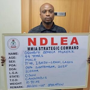 ‘’In the course of investigation, 20.5 kilograms of Canadian Loud, a strain of cannabis, were recovered from Ogunbiyi’s home in Lekki and a black Range Rover SUV marked RBC 459 EJ found in Adegoke’s residence in Ikeja GRA. They were subsequently arraigned on five counts in charge number FHC/L/925C/2025 before Justice Musa Kakaki of the Federal High Court, Lagos on 30th October 2025. The accused persons later pleaded guilty to the charges against each of them.’’ Babafemi said