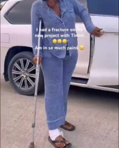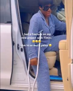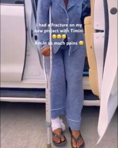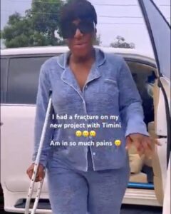 Etiko shared a video on her Instagram page, showcasing her determination to continue working despite her physical discomfort. The footage revealed that she had sustained a leg injury, forcing her to rely on crutches for mobility.