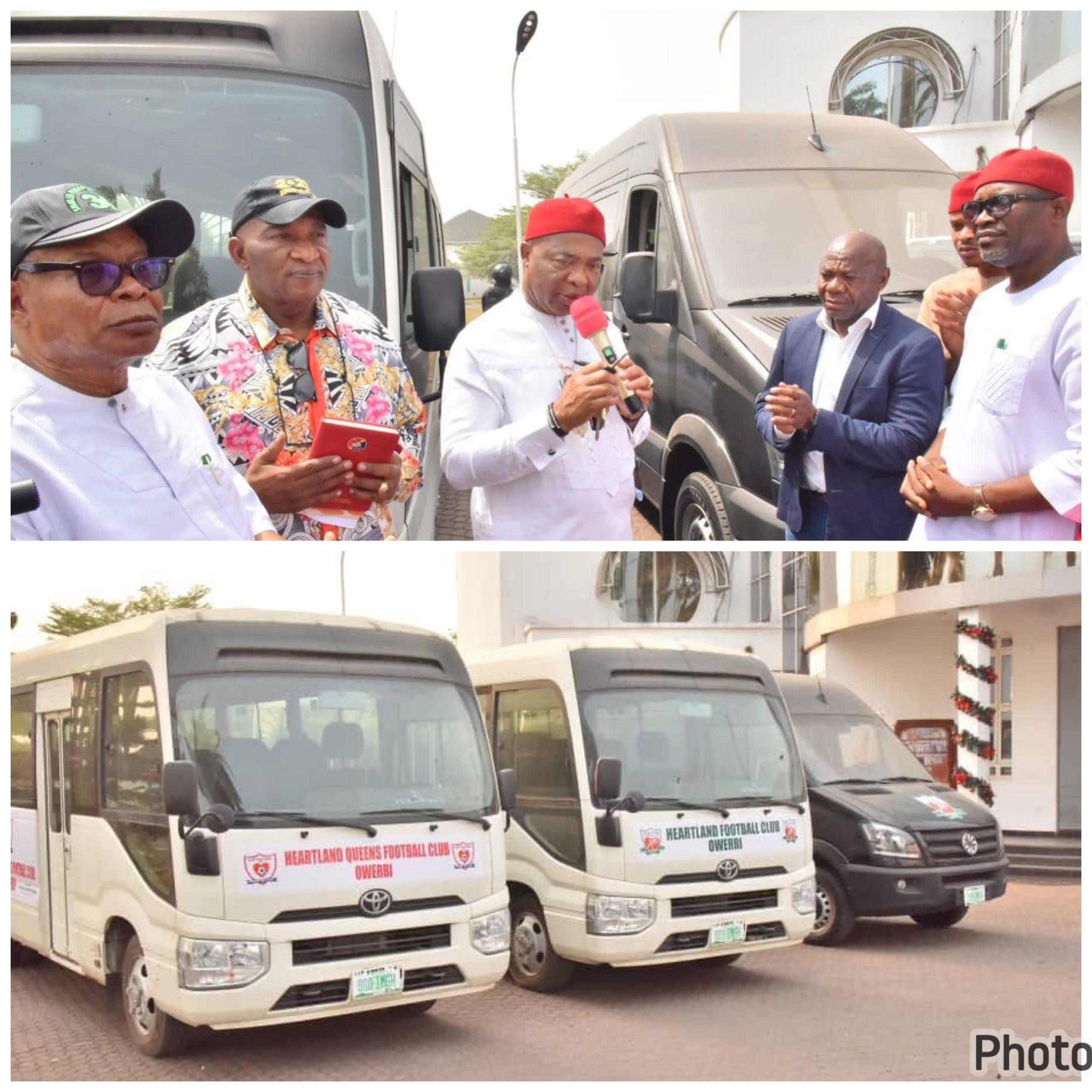 Imo State Governor, Distinguished Senator Hope Uzodinma on Saturday presented Heartland FC a Coaster and a Splinter bus to fulfill his promise to the club.
