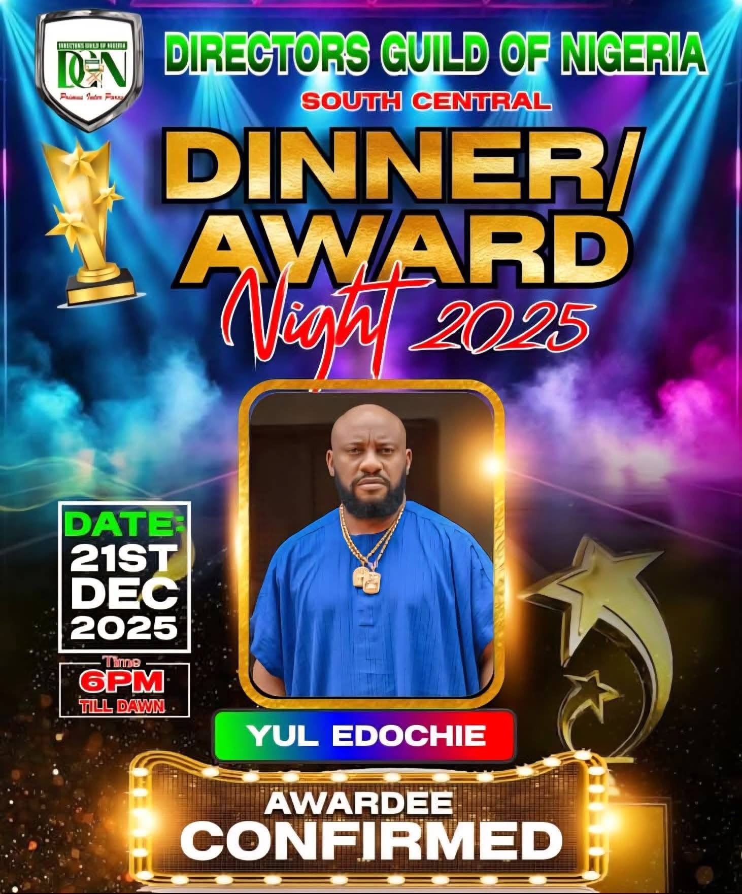 The Directors Guild of Nigeria(DGN), has confirmed its prestigious award of honour on Nollywood actor Yul Edochie over his 20 active years in the movie industry and contributing immensely to the growth of Nollywood.