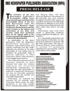 The joint statement was signed by prominent members of the Imo Newspaper Publishers Association, including: