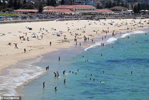 It comes after the state sweltered through a heatwave with temperatures soaring to the mid-to high 30s and low 40s (pictured, beachgoers at Bondi Beach)