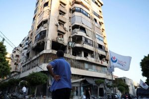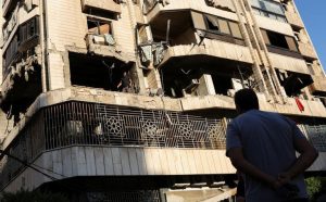 A man looks at a damaged building at the site of an Israeli strike on central Beirut’s Bachoura neighbourhood, amid ongoing hostilities between Hezbollah and Israeli forces, in Beirut, Lebanon October 3, 2024. REUTERS/Emilie Madi