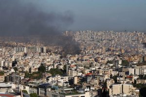 Smoke rises after a strike amid ongoing hostilities between Hezbollah and Israeli forces, in Beirut’s southern suburbs and its surroundings, as seen from Hadath, Lebanon October 3, 2024. REUTERS/Mohamed Azakir