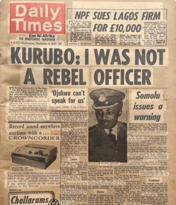 “Kurubo: I Was Not a Rebel Officer” — The 1967 Daily Times Front Page During Nigeria’s Civil War