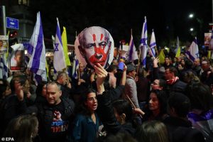 Anti government protesters take to streets after the Israeli prime minister announced that he had fired Defense Minister Yoav Gallant