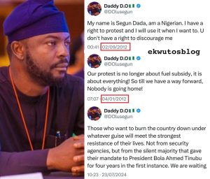 Netizens dig up old tweets of presidential aide, Dada Olusegun, following his recent warning to Nigerians.