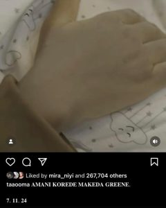 The couple has been blessed with a beautiful baby girl, Amani Korede Makeda Greene, born on November 7, 2024. Taaooma took to Instagram to share a heartwarming video showcasing her pregnancy journey and the birth of her adorable daughter.