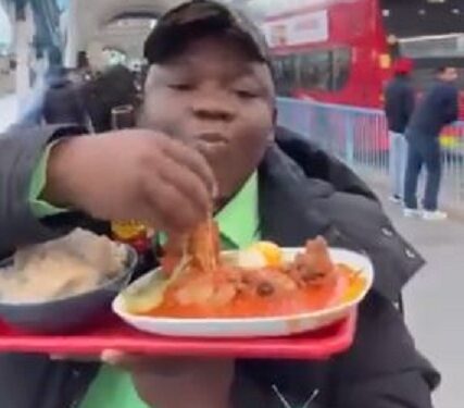 Nigerian Man Faces Backlash For Eating Pounded Yam With Bare Hands On London Bridge (Video)